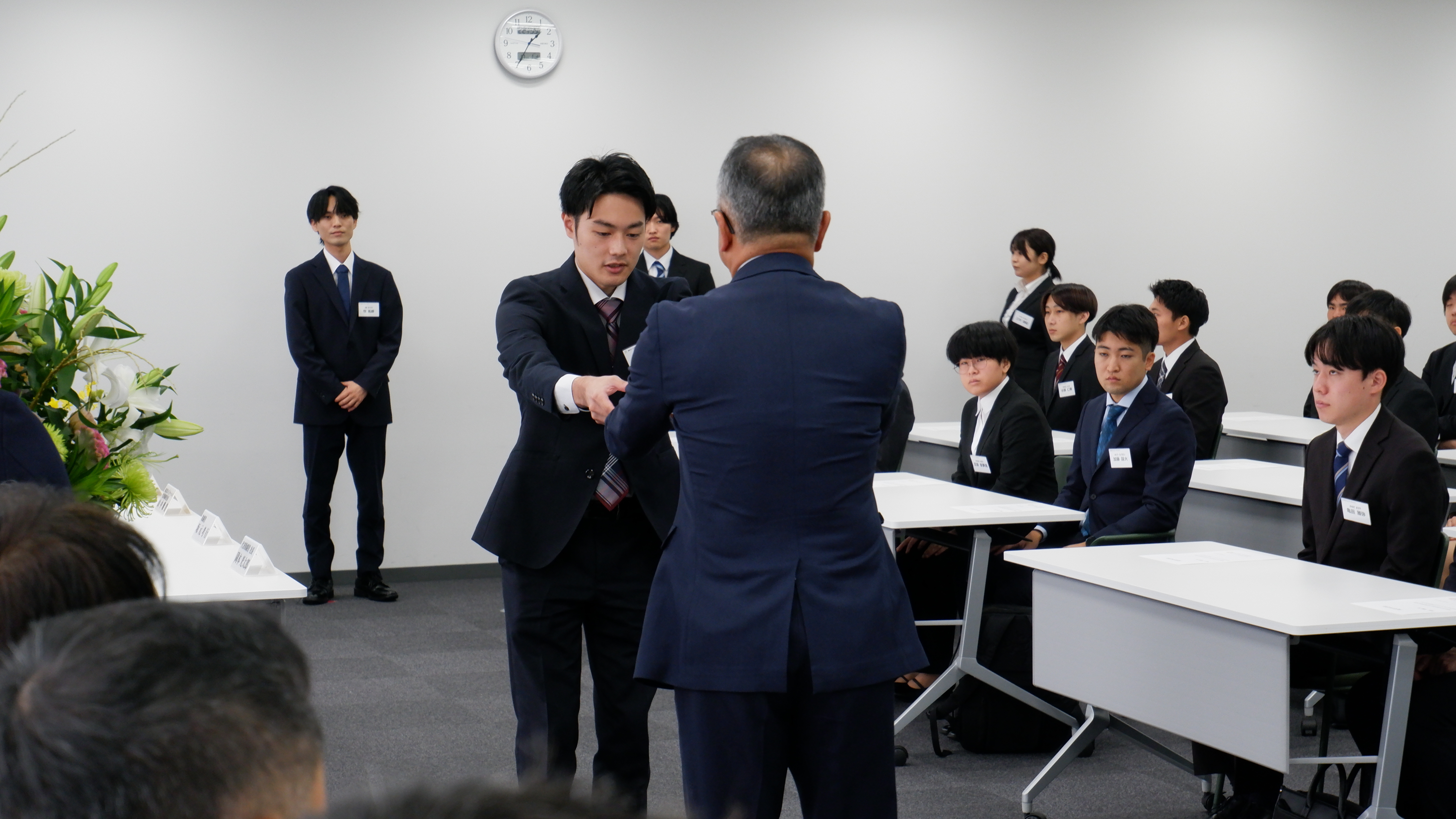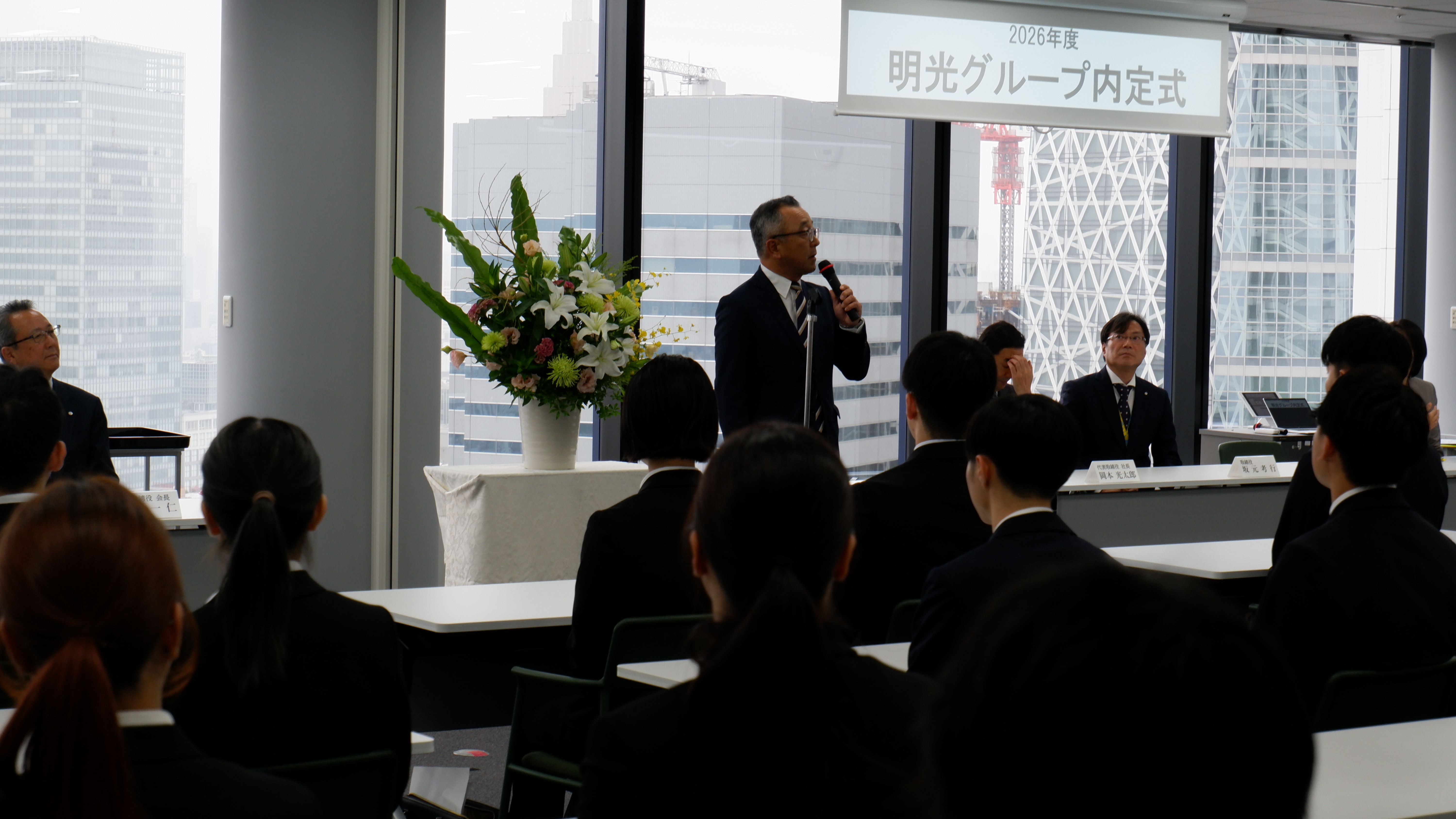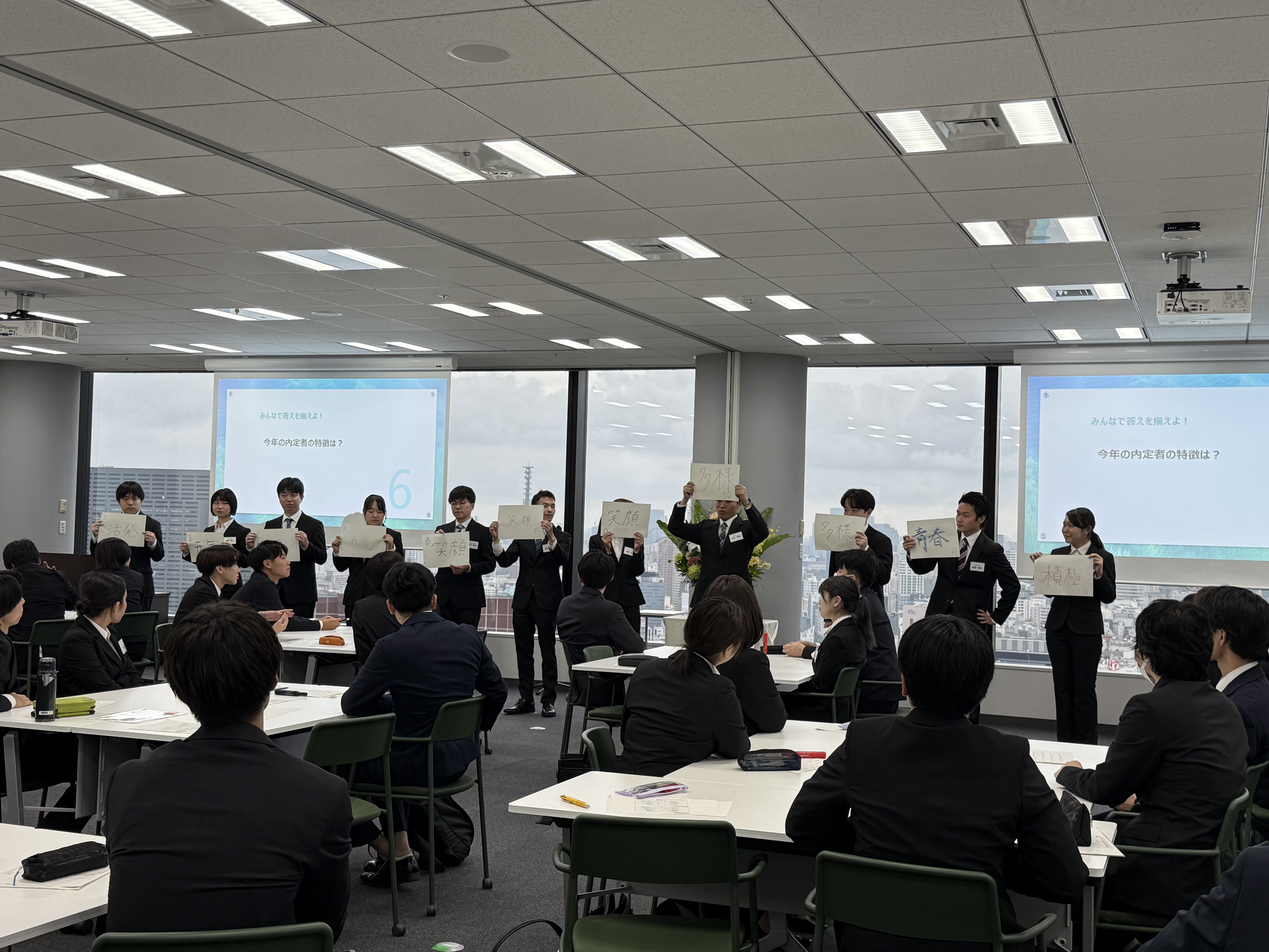 2025年10月1日 2026年新卒採用内定式をおこないました! 2025/10/01 明光グループ合同での開催は今回が初めて。 50名以上の内定者が一同に会しました。 社長より内定者一人ひとりに内定証書を授与しました。 内定式後は、チームビルディングを中心とした研修を実施。 初めましてのメンバーとたくさんコミュニケーションをとり、少しずつお互いのことを知る機会となりました。 懇親会では、社員も参加して、交流を深めました。 クイズ大会や抽選会もあり、大いに盛り上がりました。
